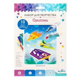 В наборе: 12 листов для создания фигур оригами, инструкция, наклейки, фигурки пилотов.