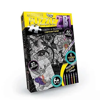 Данный набор для творчества представляет собой пазл-раскраску 2 в 1 из серии "Антистресс. Внутри ребенок найдет два пазла, на одном из которых изображен слон, а на другом совы. Общее количество элементов составляет 80штук - 60 у одного пазла и 20 у другого.