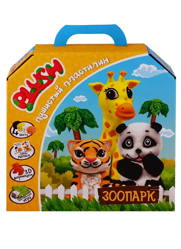 Plush - это кинетический пластилин, имеющий уникальный состав. Взяв plush в руки к Вам в ладони попадает настоящее облако, такое невесомое, но при этом очень эластичное. Из него можно лепить любые фигуры от совсем простых до настоящих художественных шедевров и не переживать, что фигуры будут растекаться под собственным весом. Приятным дополнением послужит возможность запекать PLUSH в духовке как глину. В состав набора "Зоопарк" входит: 4 цвета PLUSH (оранжевый, чёрный, белый, жёлтый) по 100 гр., настольная игра с лепкой, 4 объемных формочки-плунжера, схемы лепки с идеями фигурок