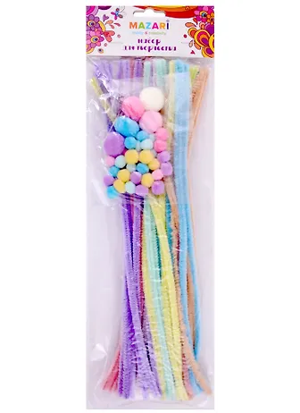 Набор для творчества включает в себя разноцветные пушистые синельные проволоки, мягкие помпоны и смешные двигающиеся глазики для создания поделок ..