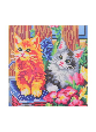 Набор для творчества, Рыжий Кот Алмазная мозаика (блест.), Котята в саду 20х20см, 27цв AS20043