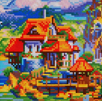 Набор для творчества, Рыжий Кот Алмазная мозаика (блест.), Красивый дом у моря 20х20см, 28цв AS20027