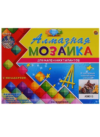 Набор для творчества, Рыжий кот, Алмазная мозаика Красный котик (блест.) 17*22см, 19цв ASM015