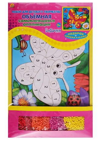 Объемная самоклеющаяся аппликация "БАБОЧКА" - это творческий набор в интересной технике: создание декоративных картин с помощью самоклеящейся аппликации. Вы будете удивлены, как волшебным образом появляется уникальное произведение искусства, которое восхищает изысканной простотой и необычным внешним видом. После окончания готовое изделие можно использовать для украшения интерьера. Состав набора: 1 основа-картинка размером 20x25 см, детали для аппликации.Возраст 6+