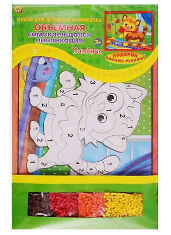 Объемная самоклеющаяся аппликация "КОТЕНОК" - это творческий набор в интересной технике: создание декоративных картин с помощью самоклеящейся аппликации. Вы будете удивлены, как волшебным образом появляется уникальное произведение искусства, которое восхищает изысканной простотой и необычным внешним видом. После окончания готовое изделие можно использовать для украшения интерьера. Состав набора: 1 основа-картинка размером 20x25 см, детали для аппликации.Возраст 6+