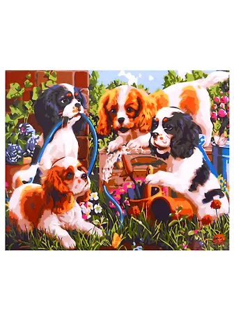Набор для творчества Рыжий кот Холст с красками 30х40см по номерам Дружные спаниели в саду Х-0145
