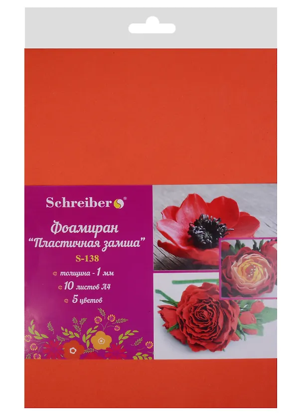 Набор для творчества, Schreiber/Шрайбер, Набор фоамирана, Красная палитра А4 4цв, 10л, 1мм