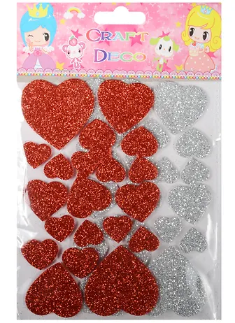 Сердца EVA с блестками (самоклеющиеся) (2листа)