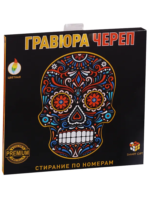 Гравюра Череп - необычная «раскраска» для всех тех, кто неравнодушен к искусству во всех его проявлениях. Вашей кисточкой будет штихель, а холстом - гравюра со специальным покрытием, элементы которого пронумерованы. Шаг за шагом, цифра за цифрой вы будете стирать слой, создавая красивую гравюру, которая сможет украсить домашний интерьер или станет необычным подарком для друзей.