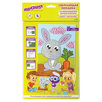 Сверкающая мозаика из мягкого пластика EVA ЮНЛАНДИЯ "Зайчонок" - это весёлый и занимательный способ развития мелкой моторики, аккуратности и цветового восприятия ребёнка. Все элементы в составе самоклеящиеся, для работы не требуются ножницы и клей.
