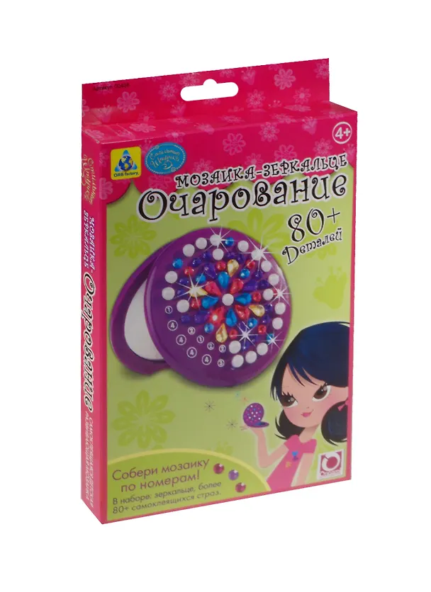Описание: Этот замечательный набор мозаики созданный специально для детей от 4-х лет, ведь подбирать и наклеивать стикеры необходимо по номерам. Хочешь выделиться среди подружек? Укрась стильное зеркальце «Очарование» сверкающими разноцветными стразами, следуя нумерации в инструкции. Каждому цвету соответствует своя цифра, а когда ребенок наклеит все стикеры по схеме - получит оригинальное разноцветное изображение. Этот компактный аксессуар состоит из двух зеркал и он легко поместится в кошельке или клатче! В наборе: зеркальце, более 80+ самоклеящихся элементов и страз.
