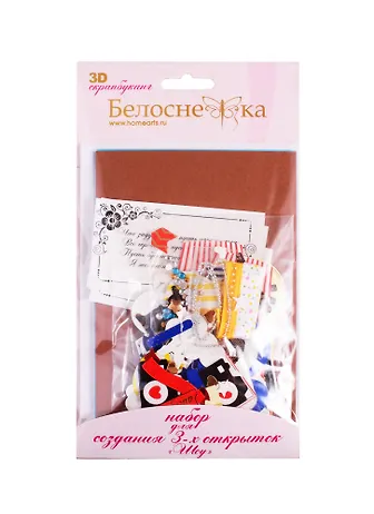 Красивые стильные наборы для изготовления открыток своими руками — это прекрасный подарок для любого праздника. Наборы комплектуются цветными заготовками для открыток, ленточками, тесьмой, стразами разных форм. В набор вложен комплект вырубки из картона — забавные фигурки, сердечки, рамки, игрушки и 3 карточки с маленькими поздравительными стихами. Еще одна отличительная особенность – на внутренней стороне вкладыша напечатаны карточки для скрапбукинга, их можно вырезать и использовать при создании своей композиции. Художник : Ирина Зверева .