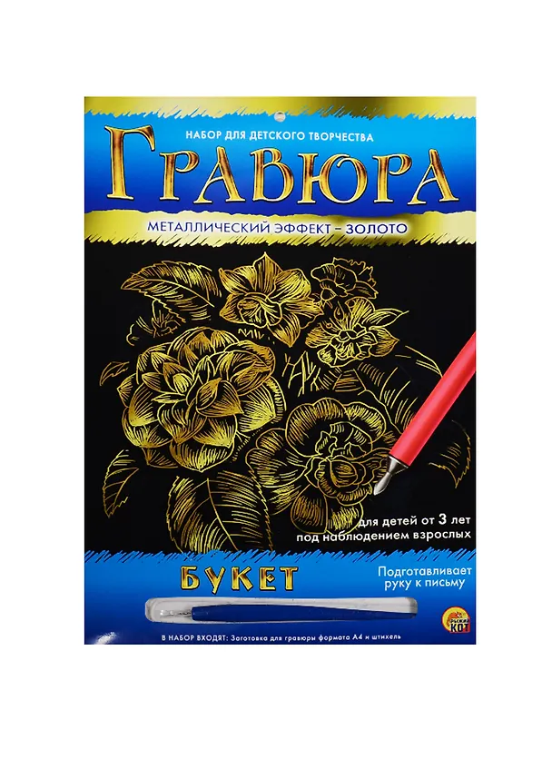 Перед Вами уникальные наборы для творчества, позволяющие Вашему ребёнку развивать свое художественное воображение, создавая сюжеты, достойные великих мастеров! Техника гравюры очень проста и понятна! На заготовке нарисованы контуры. Просто нанесите все штрихи с помощью специального штихеля и получите Вашу собственную уникальную гравюру! Возраст 3+.