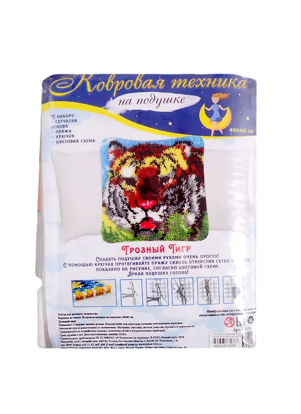 Серия хобби-наборов для творчества — полезное времяпрепровождение, развивающее воображение и внимательность, пространственное мышление и мелкую моторику. Набор для создания картины из ниток в ковровой технике на подушке "Грозный тигр" несомненно, принесет вам удовольствие. Подробную инструкцию Вы найдете в коробке. Размер: 40х40 см.Возраст 10+.