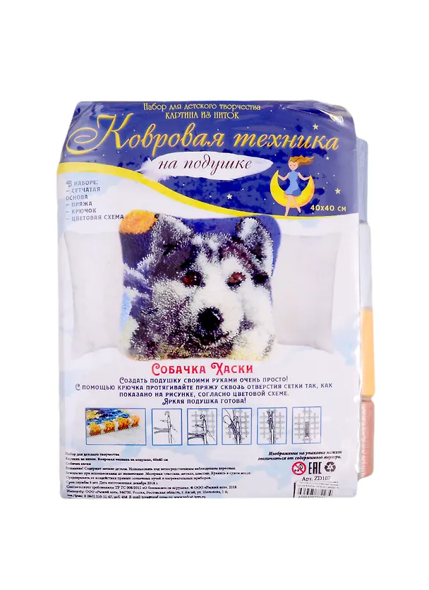 Серия хобби-наборов для творчества — полезное времяпрепровождение, развивающее воображение и внимательность, пространственное мышление и мелкую моторику. Набор для создания картины из ниток в ковровой технике на подушке "Собачка хаски" несомненно, принесет вам удовольствие. Подробную инструкцию Вы найдете в коробке. Размер: 40х40 см.Возраст 10+.