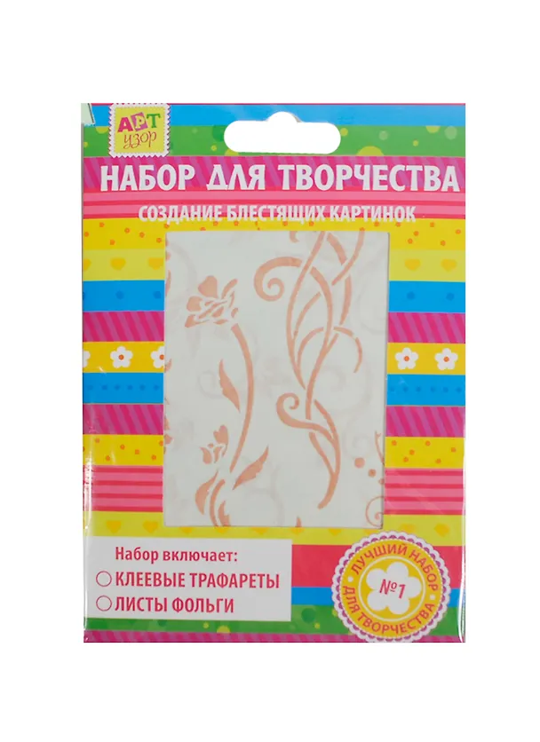 Если Вы хотите сделать праздничную открытку еще ярче, придать блокнотам, тетрадям, альбомам особую изюминку, а также оригинально задекорировать предметы из пластика или дерева, металла или стекла, на помощь Вам придет набор для творчества с клеевыми трафаретами и листами фольги. С его помощью Вы легко и просто сможете создать эффектные рисунки на выбранной поверхности, придать ей фактурность и расставить яркие акценты. Пусть творчество приносит радость!