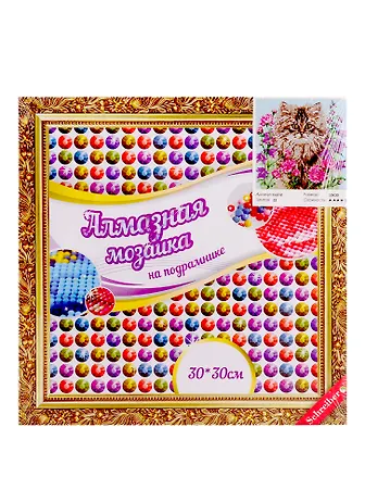 Набор для творчества TUKZAR Алмазная мозаика 30х30см Кот в цветах ,на подрамнике, круглые непрозрачные стразы 2,7 мм