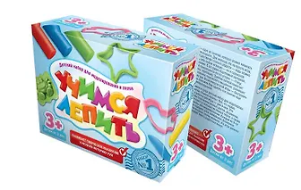 Мини-набор для малышей от 3 лет, в который входит масса для лепки, 4 цвета, формочки, инструменты для лепки. Упаковка — картонная коробка