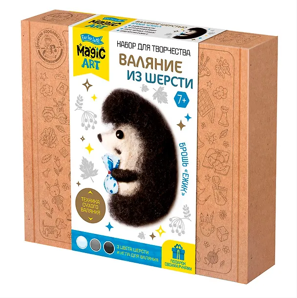 Творческий набор по валянию из шерсти купила больше себе, чем ребенку. Было очень интересно попробовать такой вид творчества. Творческий набор продается в плотной коробке, внутри все целое. Отдельное спасибо за подробную инструкцию с картинками. Создавать игрушки из шерсти не сложно, нужно только следовать инструкции. Шерсть хорошего качества, игла для валяния удобная. Брошь получилась изумительно красивая.