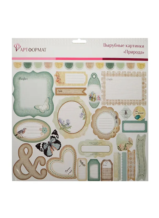 Предназначены для декорирования фотоальбомов, открыток, упаковки подарков и других поделок. Они могут быть прикреплены при помощи двустороннего скотча, клеевого роллера или клея. Картинки сгруппированы на шести листах по тематикам, имеют перфорированные контуры, позволяющие отделить их легким нажатием. Если вырубные картинки крепить на двусторонний скотч, то, слегка выступая относительно декорируемой плоскости, они создадут интересный дизайнерский 3D-эффект.