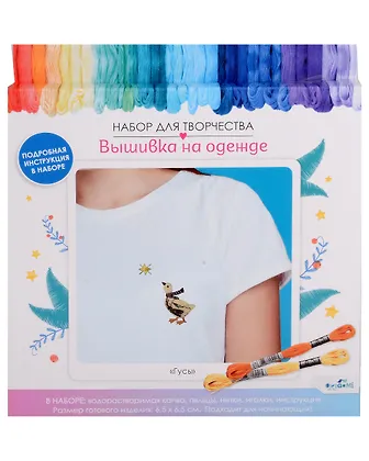 Хороший набор вышивки. В нём можно найти всё необходимое: две иголки, канва, мулине с избытком. Инструкции понятые, объясняется, как сделать вышивку на одежде. Описаны все приёмы, которые будут использованы в вышивании.