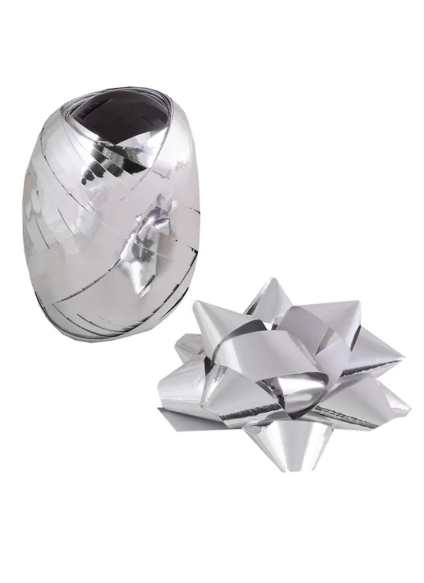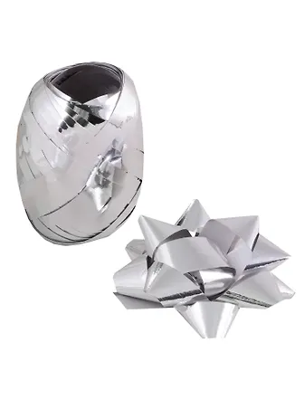Набор для упаковки "Белый металлик" бант, лента (10м)