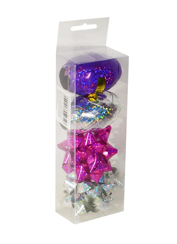 Набор для упаковки "Голография" лента 2шт (фиол., сер.), бант 4шт (2 малин., 2 сер.)