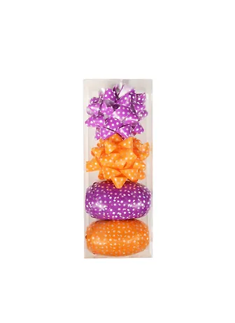 Набор для упаковки в горошек, 2 кокона+ 4 бантика, фиолет. + оранж.