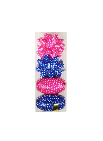 Набор для упаковки в горошек, 2 кокона+ 4 бантика, синий + фуксия.