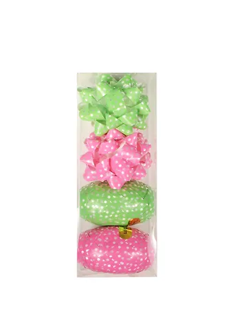 Набор для упаковки в горошек, 2 кокона+ 4 бантика, зелен. + розов.