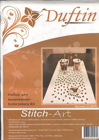 Набор для вышивания Duftin (11-807R) (дорожка для стола (40х100см)+мулине игла)
