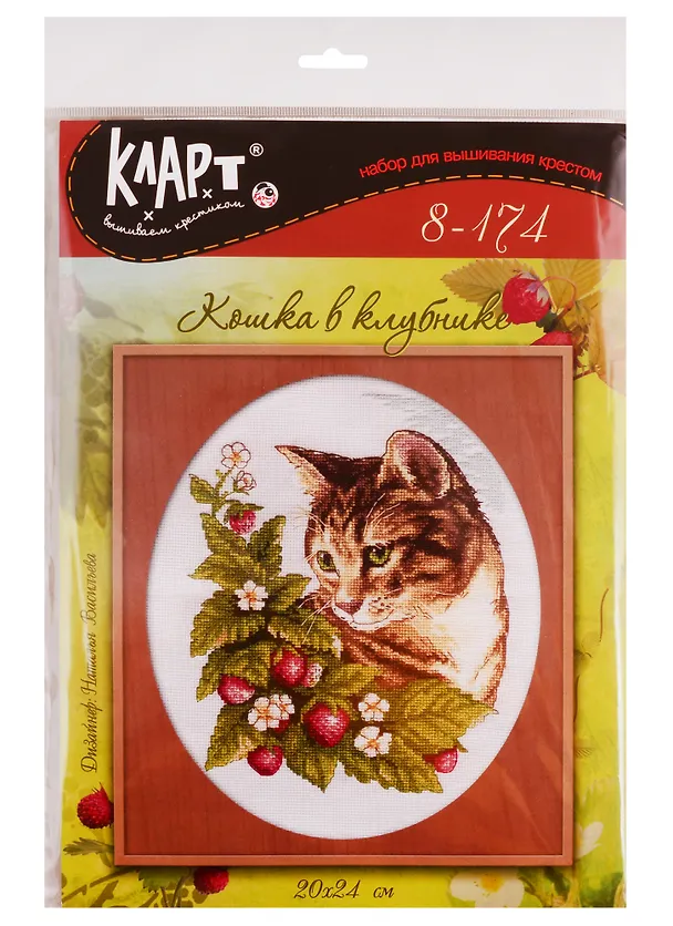 Набор для вышивания Klart Кошка в клубнике 8-174