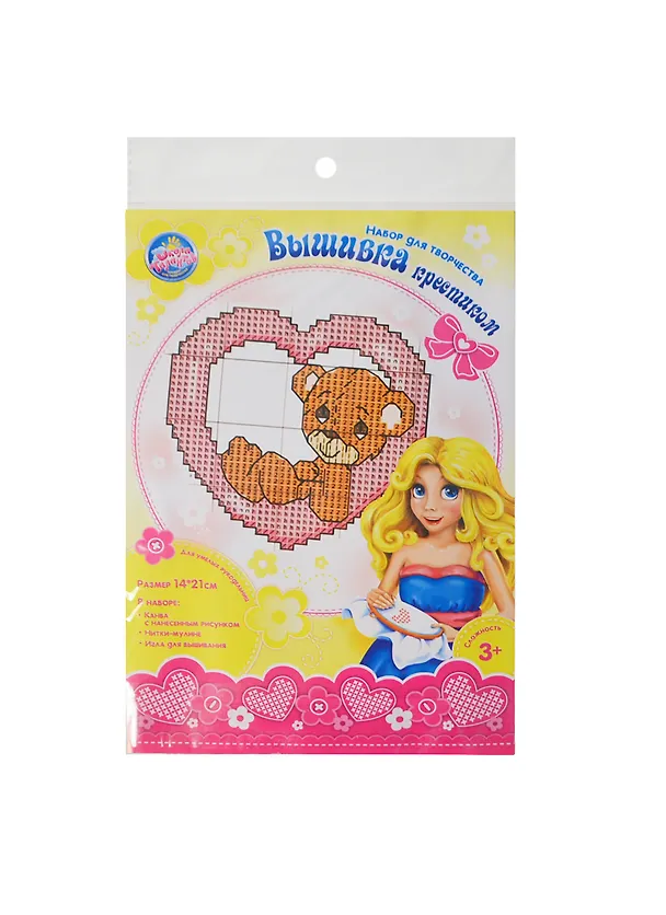 Набор для вышивания крестиком Мишка в сердечке (718761) (14х21см) (упаковка)