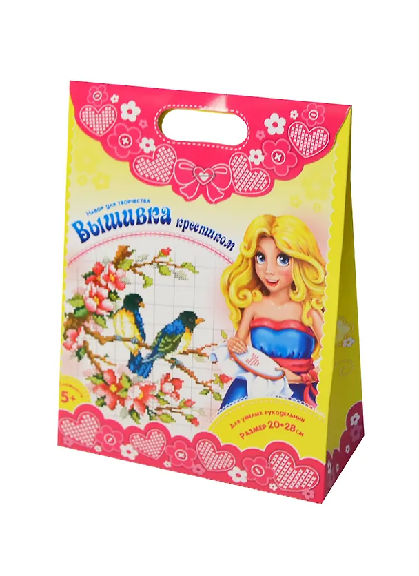 Набор для вышивания — это всё необходимое для вышивки какого-то определенного рисунка: канва, нитки всех необходимых цветов, специальная игла для вышивания, цветная схема и подробная инструкция. Такие наборы для вышивки отлично подходят как для умелых вышивальщиц, так и для начинающих рукодельниц. Наличие схемы и инструкции не только помогает избежать ошибок при вышивании, но и избавляет от необходимости самим рисовать дизайн будущего изделия и разбивать изображение на цветные квадратики. Кроме того, благодаря схеме для вышивки крестом, можно сразу представить себе, как должна выглядеть готовая работа. Вам также не придется тратить время на подбор ниток нужных вам цветов и рассчитывать их ко