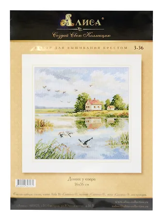 Набор для вышивания крестом "Домик у озера" 16х16см