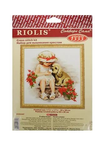 Набор для вышивания крестом Риолис Девочка со щенком (1333) (651614) (30х30см) (упаковка)
