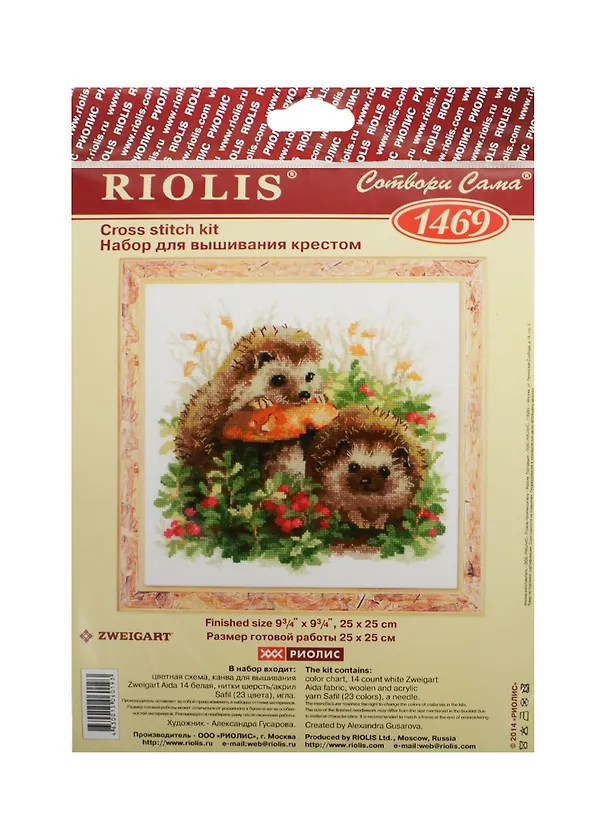 Набор для вышивания крестом Риолис Ежики (1469) (547286) (25х25см) (упаковка)