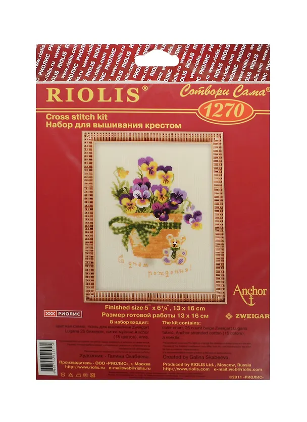 Риолис - российский производитель товаров для творчества, выпускающий, в том числе, и наборы для вышивания крестиком.
