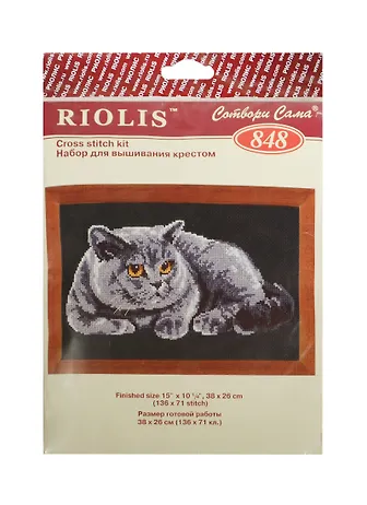 Набор для вышивания крестом Риолис Серый кот (848) (182776) (38х26см) (упаковка)