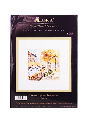Вышивка маленькая, но трудоёмкая из-за разнообразия стежков: есть и крестики, и полукрест, и смешанные цвета-бленды. Но создаваемый эффект того стоит. Тут множество деталей, например, лёгкими штрихами обозначены опавшие листья, скопившиеся на воде вдоль каменной набережной. А косые стежки полукрестиков передают порывы ветра, растрёпывающего осенние ветви.