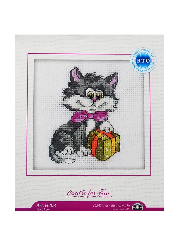 Набор для вышивания РТО Котенок с подарком (H203) (10х10см) (с мулине DMC) (упаковка)