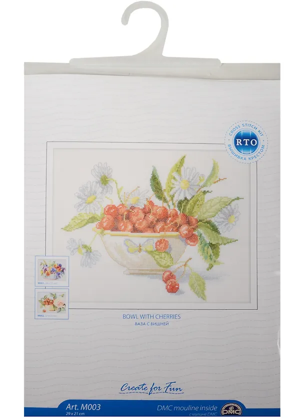 Набор для вышивания крестом RTO "Ваза с вишней" поможет вам создать свой личный шедевр - красивую картину, вышитую нитками мулине в технике "счетный крест". Работа, выполненная своими руками, станет отличным подарком для друзей и близких!