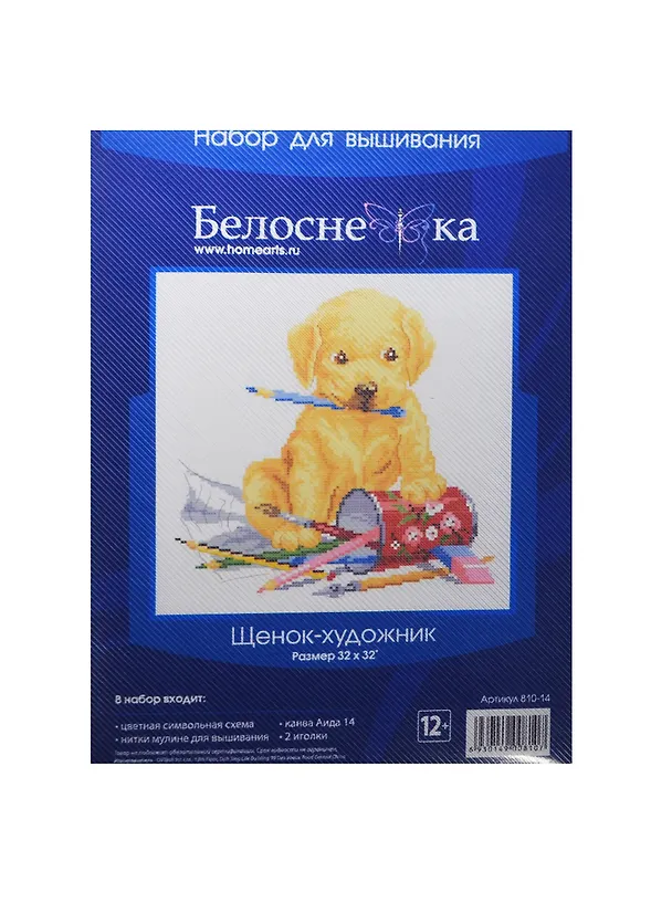 Набор для вышивания Щенок-художник (B-810) (32х32) (Белоснежка) (упаковка)
