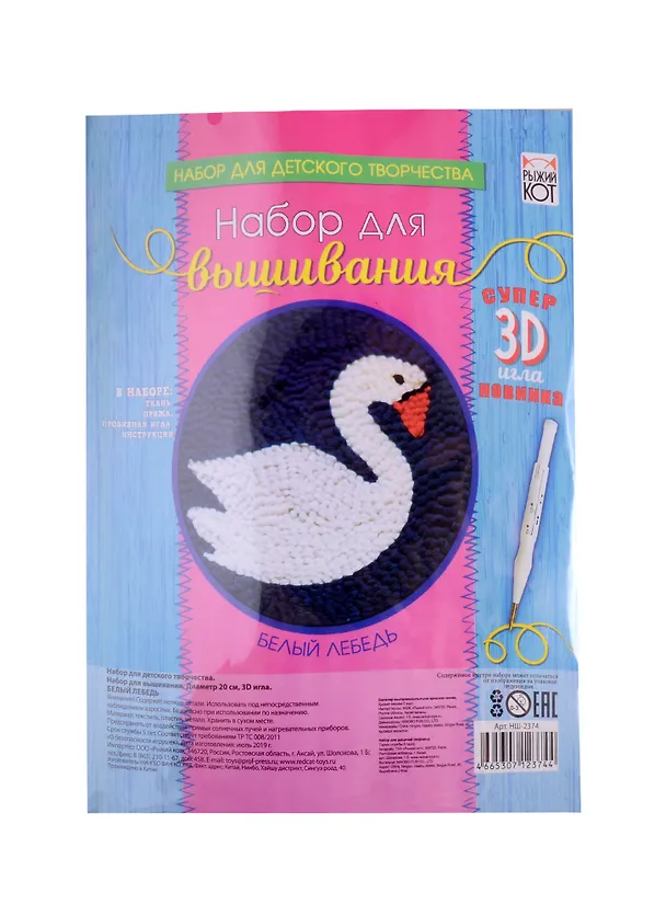 Набор для вышивания ТМ Рыжий кот Белый лебедь, c 3D иглой НШ-2374