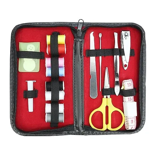 Компактный набор швейных принадлежностей в поход или в дорогу составе которого: нитковдеватель- 2шт, иглы в футляре, сантиметр - 1 шт, ножницы -1 шт, нитки 8 цветов, принадлежности для маникюра ( пилочка, лопаточка, пинцет, щипцы)