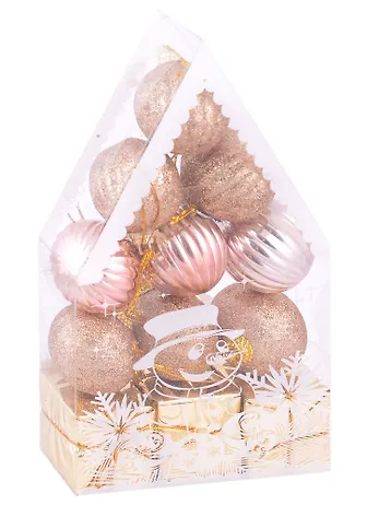 Набор ёлочных шаров Красивый домик (бронзовые) (12 шт) (пластик) (4 см)