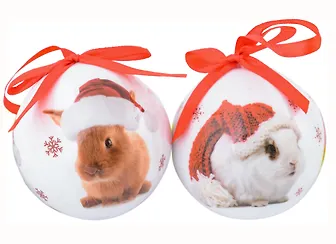 Набор елочных шаров НГ Кролики в колпачках (2 шт) (пластик) (7,5 см) (ПВХ Бокс)