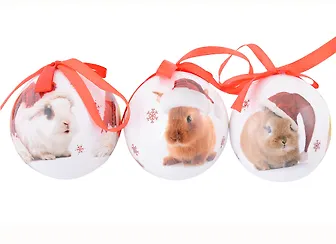 Шарики идеально подойдут для украшения елочки в доме, где уже есть кроля или для ветклиник, куда приходят множество животных. Ведь им тоже надо поднимать настроение милыми вещицами.