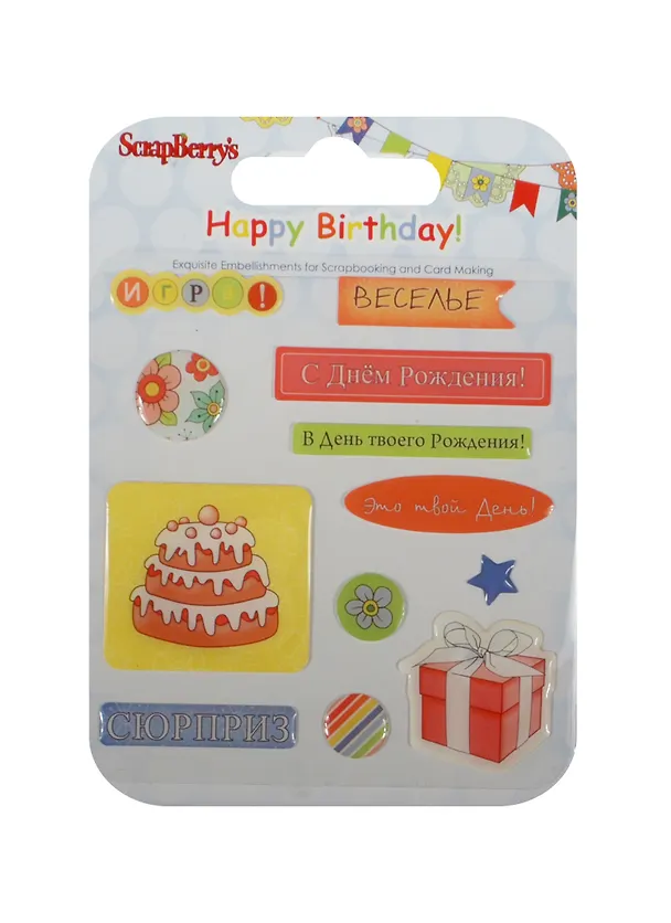 Набор эпоксидных наклеек С Днем Рождения (RU) (SCB34001075) (упаковка)