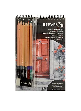 Набор эскизный "Рисуем на ходу - Цвет" 40л бумаги, подложка, спираль, 4 ч/гр карандашей, 2 цв. карандаша, ластик, инструкция, REEVES
